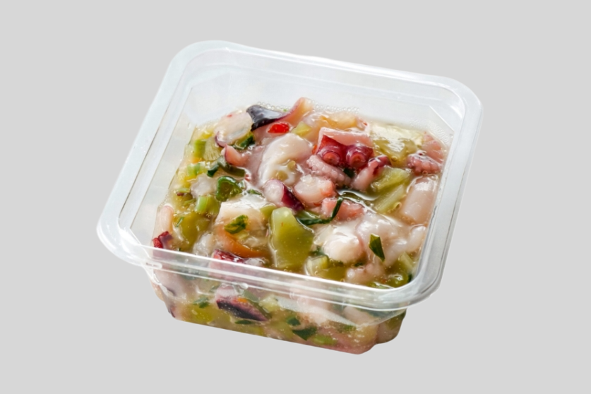 这款沙拉由可口的刺身级生章鱼小块制成,浸泡在芥末酱汁中,达到辛辣与鲜味的完美平衡。章鱼小块口感弹牙,味道独特,是一款很受欢迎的即食开胃菜。